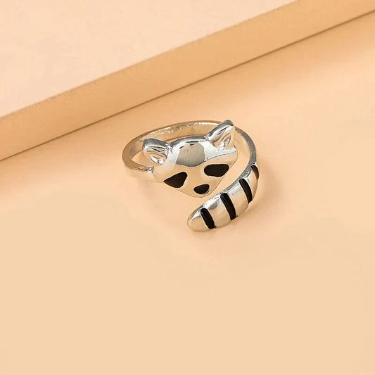 Wunderschöner verstellbarer Waschbär-Ring aus hochwertigem 925 Sterling Silber
