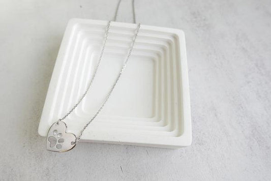 NOYA – Elegante silberne Halskette mit Herz & Pfote für stilvolle Momente