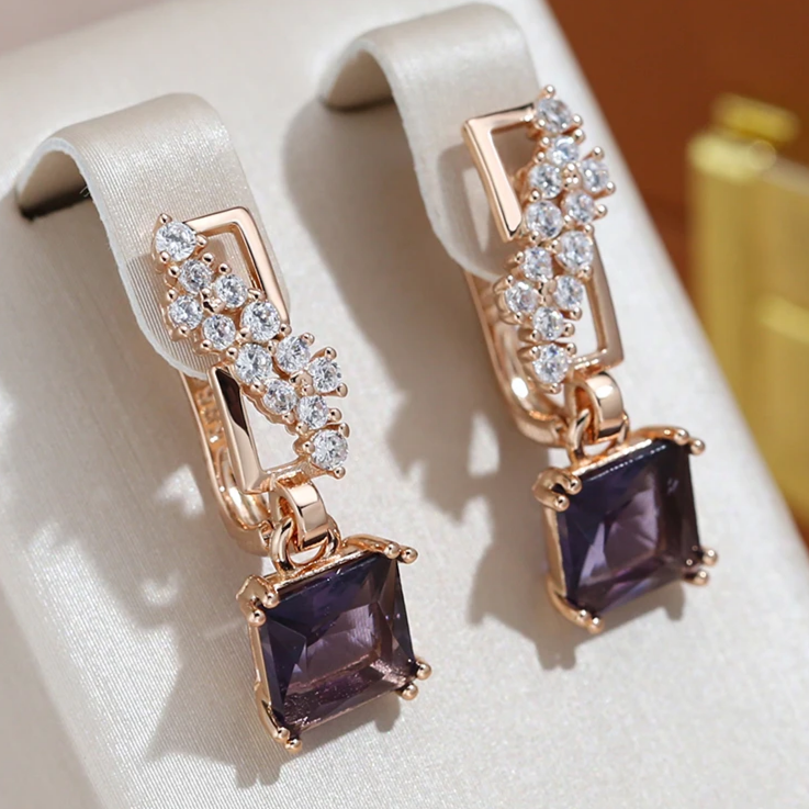 Elegante Ohrringe mit funkelnden, vergoldeten, dunklen Kristallen